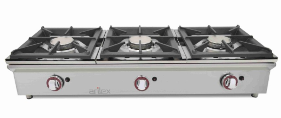 Serie: 500 Descripción: Fogón 900. Quemador: 5,5 + 5,5 + 5,5 KW. Medidas: 900x500x305 mm. Peso: 26 Kg. Potencia: 16,5 KW kcal/h: 14.190