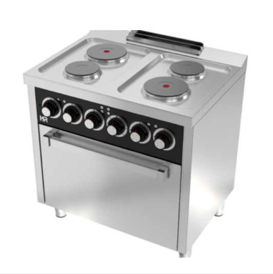 Serie:600 Descripción:Cocina de horno 600 4 placas Horno:3,5KW Placas:2+2 + 1+1KW Medidas:800x600x880mm Peso:79Kg Potencia:9,5 KW/380 V 3+N